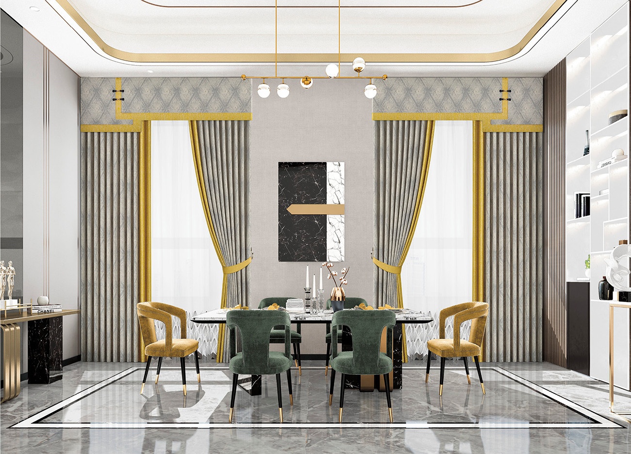 灰黃色彩組合,將空間情感張力豐富表現(xiàn),奢華質(zhì)感,精密呈現(xiàn)