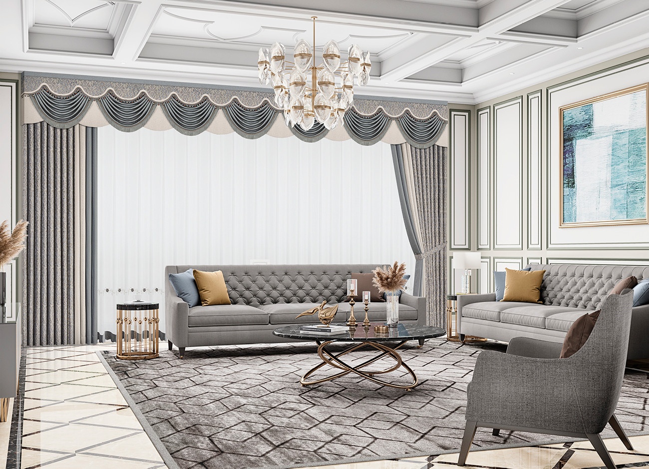 法式的簾幔以及線條傳承了古典的文化底蘊以及歷史美感,空間被凝練得更為簡潔清雅,配合富有張力的垂墜感,詮釋雋永悠長的魅力。