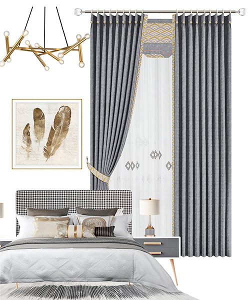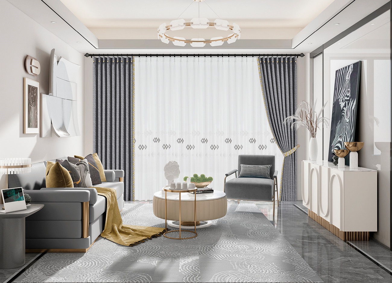 圖形是城市構成的基本元素,與布藝結合,營造立體感和秩序感。灰色調有著百搭屬性,時尚經典,是—種永不過時的高級品味。